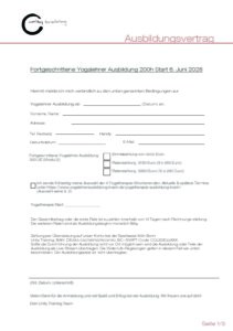 Über die Ausbildung wird ein rechtsgültiger Vertrag abgeschlossen, der alle Formalitäten der Yogalehrer-Ausbildung regelt.